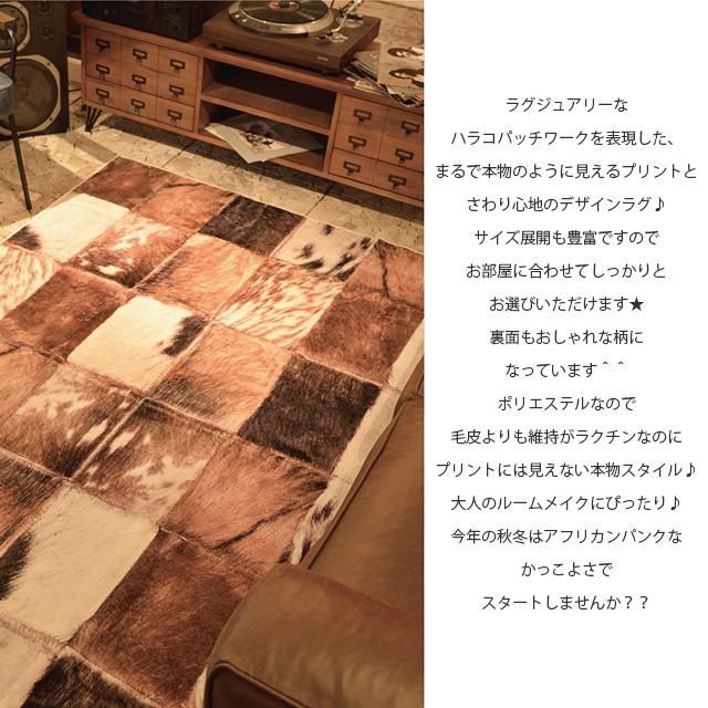 ラグジュアリーなハラコパッチワークを表現した、まるで本物のように見えるプリントとさわり心地のデザインラグ♪