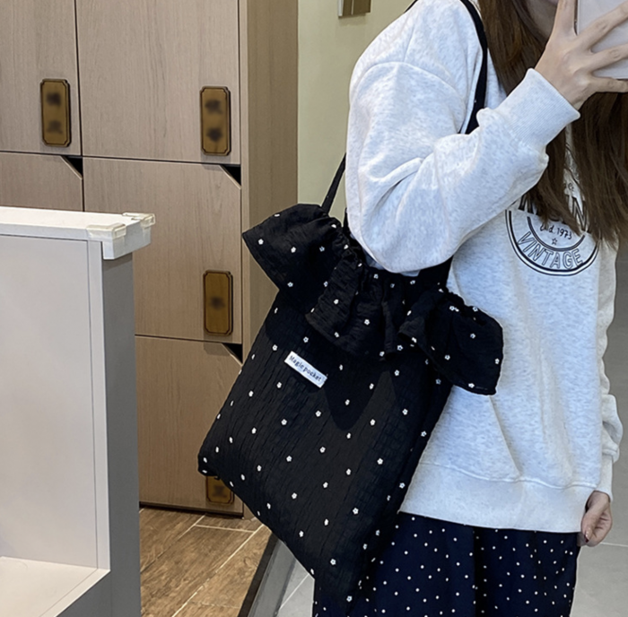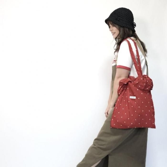 3wayで使用できるリボンデザインのリュック。肩がけ、背負って、腕に掛けてとシーンやファッションによって使い方は様々。収納抜群なシャカシャカしたナイロン生地のバッグ