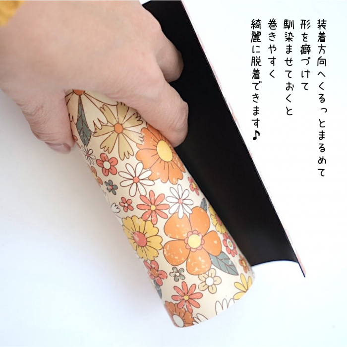 ※始めに装着方向へくるっとまるめて形を癖づけて馴染ませておくと巻きやすく、綺麗に脱着できます